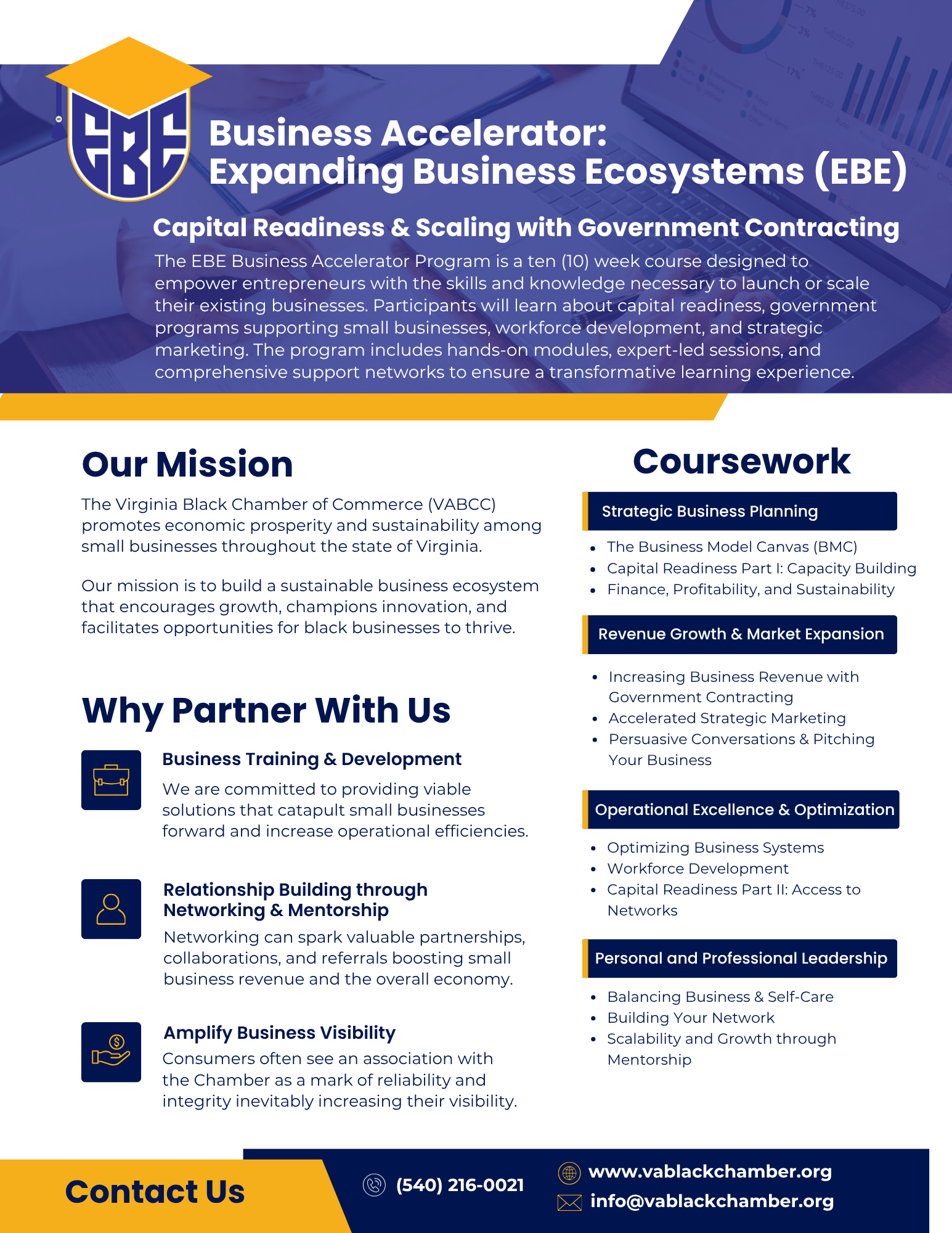 Our strategic partnerships with higher education institutions, chambers of commerce, resource organizations and funding partners will enable us to provide access to broader networks, exposure to emerging markets and access to capital to empower financially savvy, procurement-ready, and competitively viable socially and economically disadvantaged individuals (SEDIs).